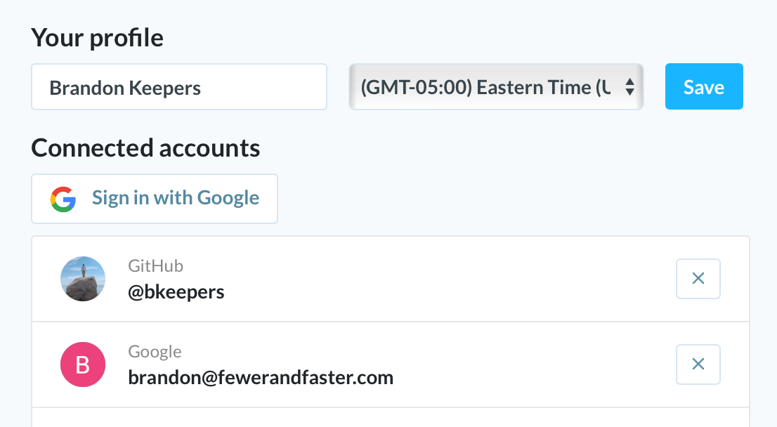 If you already have a Flipper Cloud account and want to connect your Google account, go to your Profile and click "Sign In with Google" under the Connected accounts section.